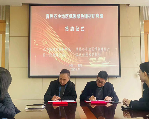 近期,我司與綠色建材產(chǎn)品認(rèn)證技術(shù)委員會(huì)夏熱冬冷地區(qū)工作委員會(huì)在江蘇省建筑材料研究設(shè)計(jì)院有限公司簽署了夏熱冬冷地區(qū)低碳綠色建材研究院合作協(xié)議。